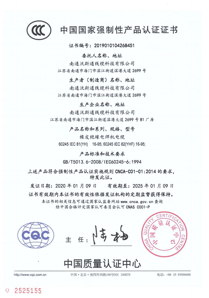 CCC国家强制性产品认证证书