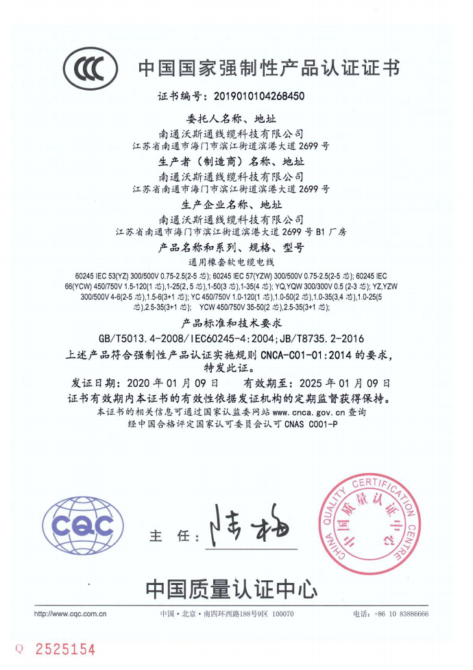 CQC产品认证证书